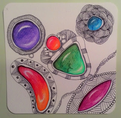We started out with "tiles" I had prepared before hand. I wanted the initial focus to be the Zenstone technique and thought we could try out several colors and shapes before slowing down to draw.